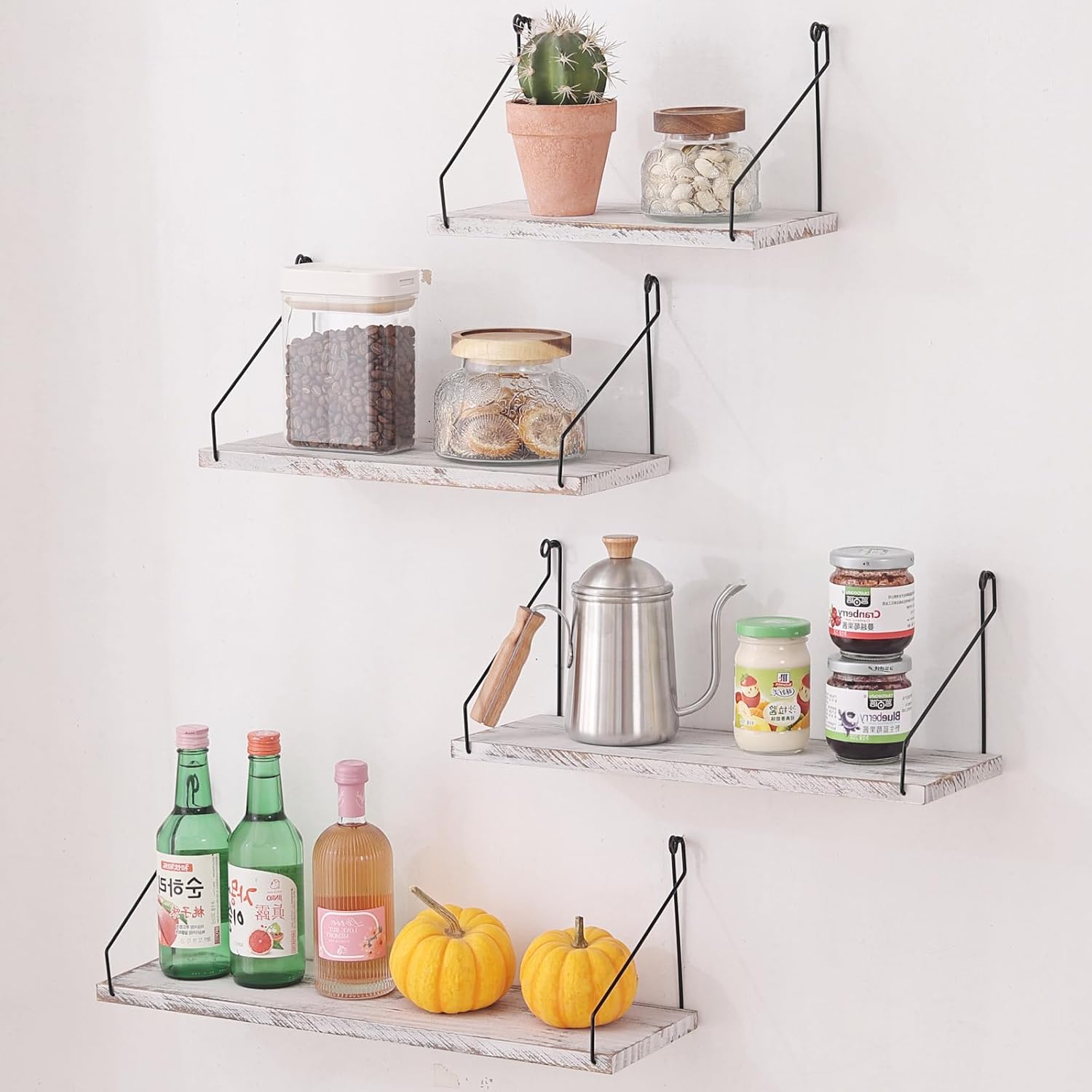 ウォールシェルフ 壁を傷つけない 29+36+42+50cm4点セット 棚 白 壁掛け棚 賃貸 壁 棚 穴あけない ウォールラック 壁に付けられる家具 飾り棚木製 簡単取り付け リビング/洗面所/キッチン/トイレ/玄関 壁面収納 (ホワイト)