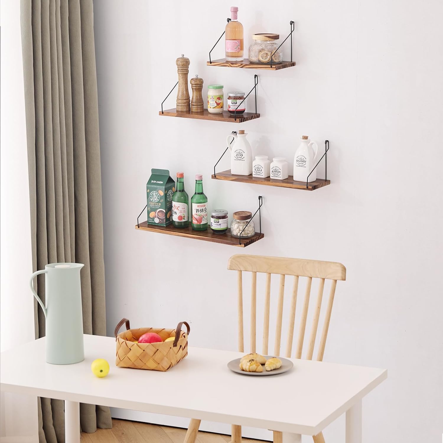 ウォールシェルフ 壁を傷つけない 29+36+42+50cm4点セット 壁掛け棚 賃貸 壁 棚 穴あけない ウォールラック 壁に付けられる家具 飾り棚木製 簡単取り付け 洗面所/キッチン/トイレ/玄関 壁棚収納 (ライトブラウン)