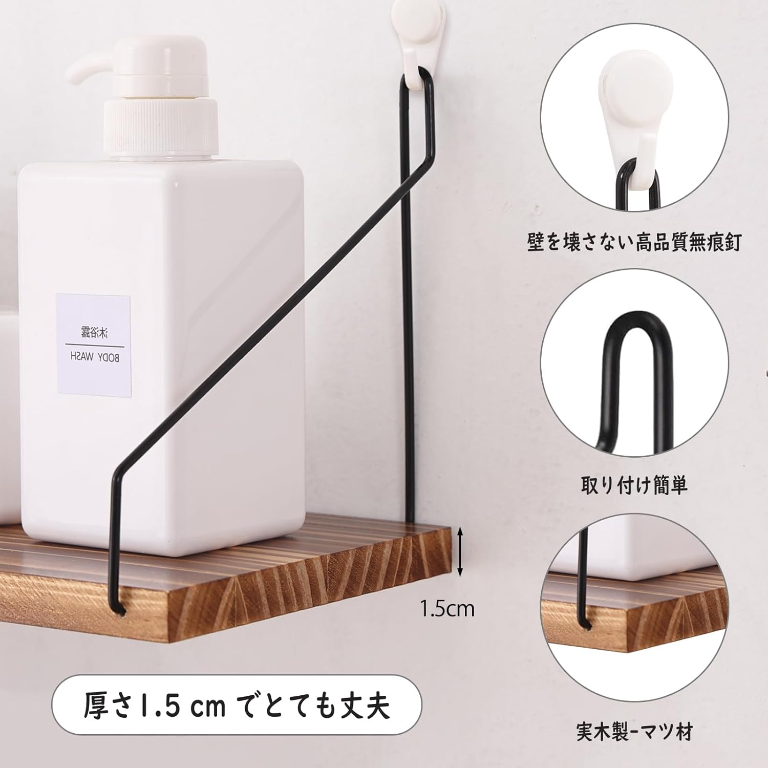 ウォールシェルフ 壁を傷つけない 29+36+42+50cm4点セット 壁掛け棚 賃貸 壁 棚 穴あけない ウォールラック 壁に付けられる家具 飾り棚木製 簡単取り付け リビング/洗面所/キッチン/トイレ/玄関 壁面収納 (ホワイト)