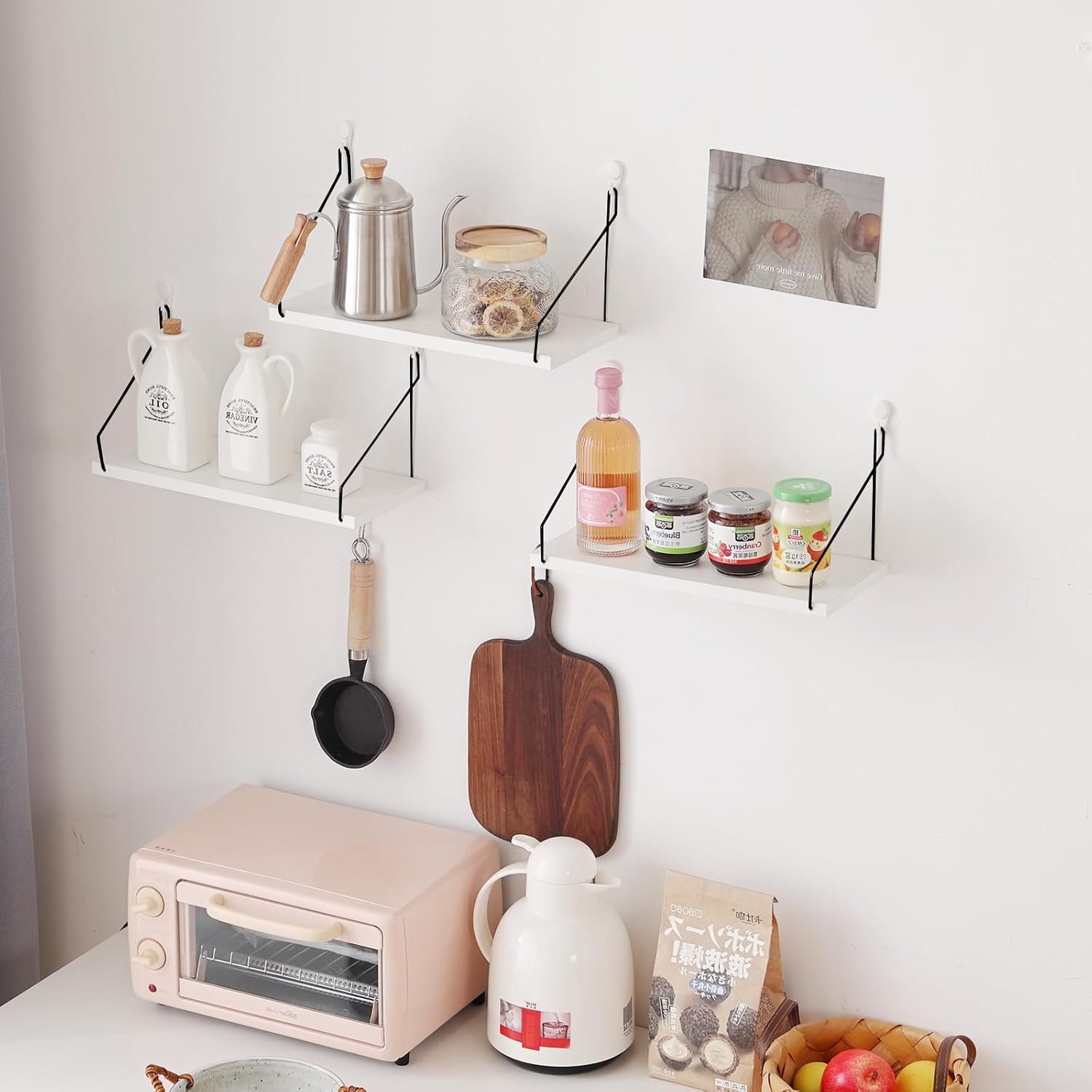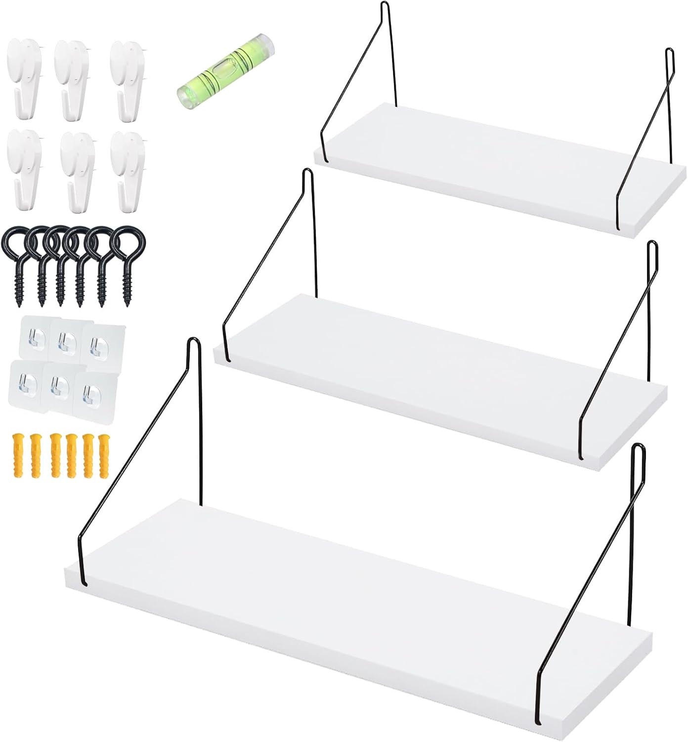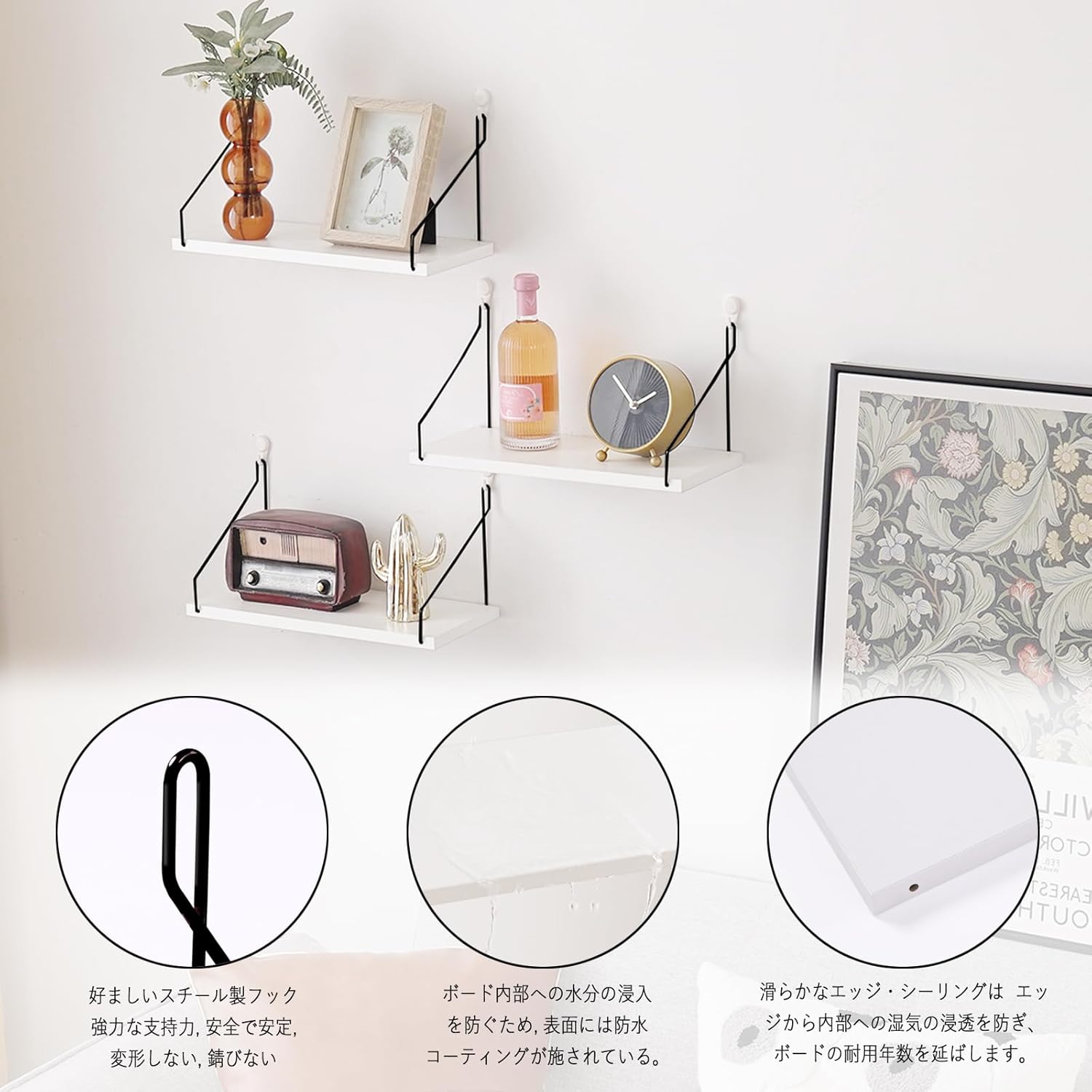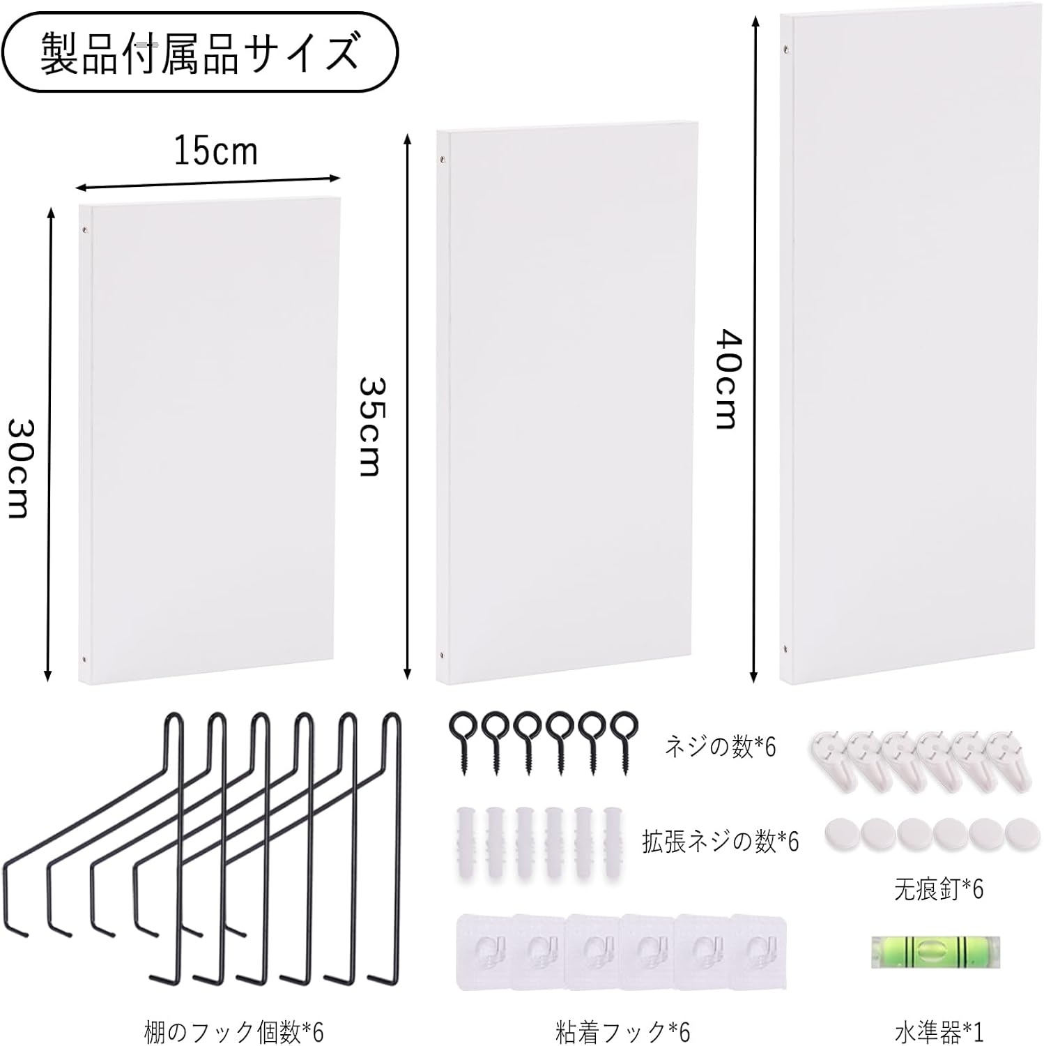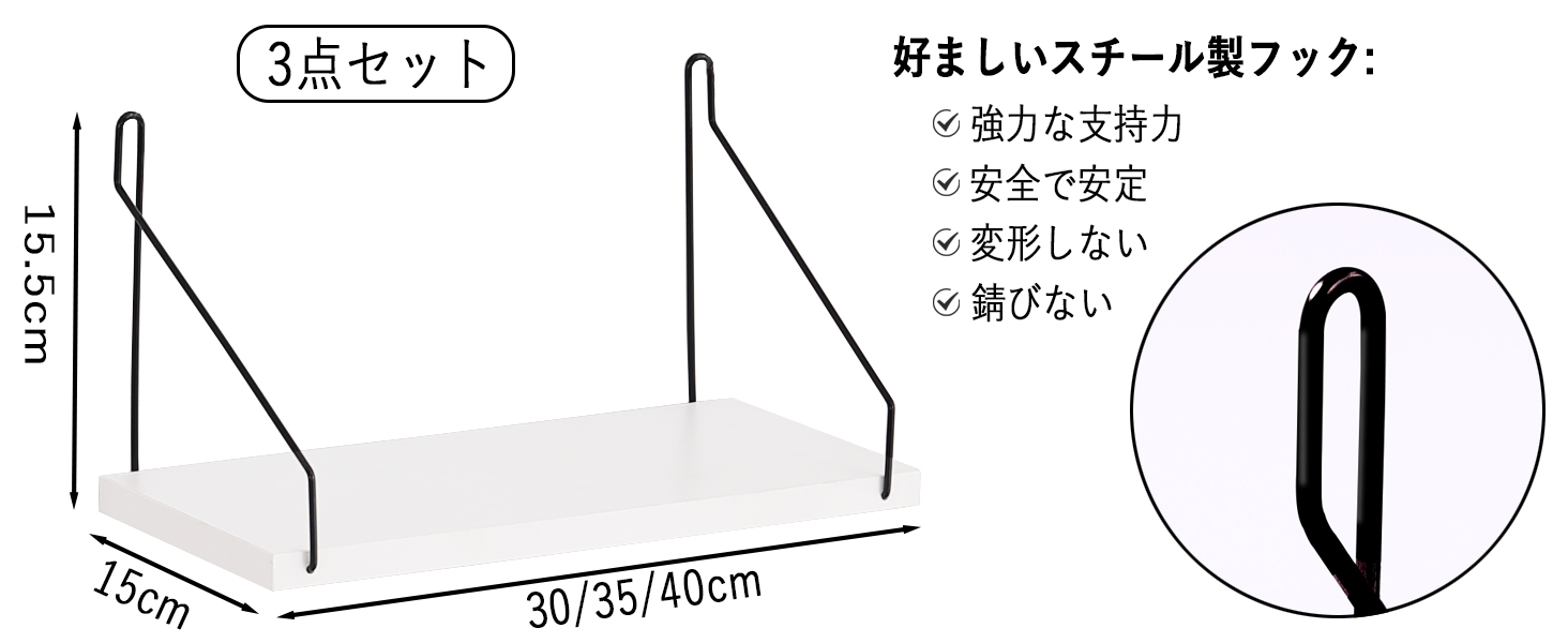 ウォールシェルフ 壁を傷つけない 30+35+40cm3点セット 壁掛け棚 棚 白賃貸 壁 棚 穴あけない ウォールラック 壁に付けられる家具 diy飾り棚木製 簡単取り付け リビング/洗面所/キッチン/トイレ/玄関 収納ラック(ホワイト)