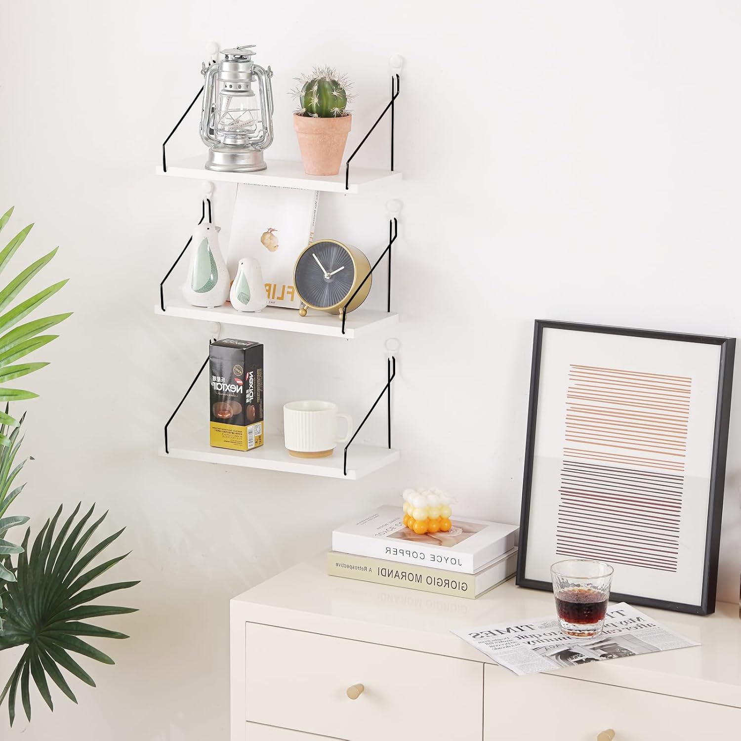 このウォールラックは、非常に優れた防水性と防錆効果があるため、リビングルームベッドルーム、さらにはキッチンの壁に設置することができます。 植物、本、装飾品、プロジェクターなど、好きなものを何でも置くことができます。 シンプルなカラーはどんなインテリアスタイルにも自然に溶け込み、複数購入して壁に整然と設置すると、予想外の効果が得られます。
